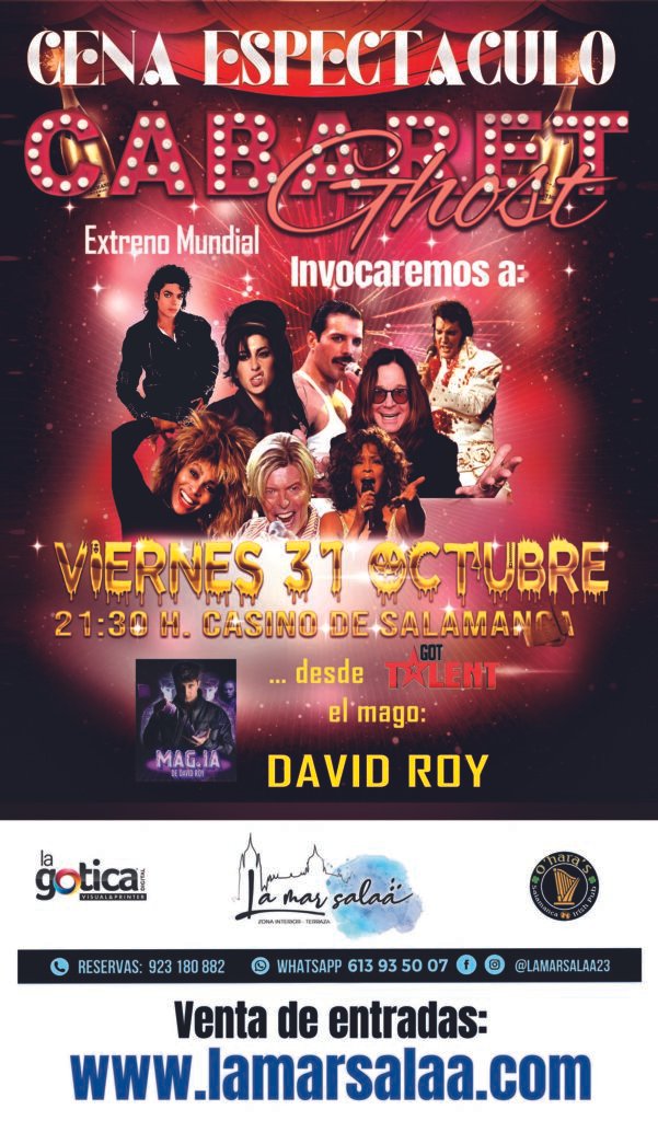 Amenizando la cena estará el violinista Arthur Violin y, desde Got Talent, David Roy el mago que dejó sin palabras al mismo Risto Mejide y que actualmente puedes ver en su espectáculo en Gran Vía de Madrid.